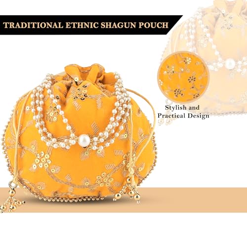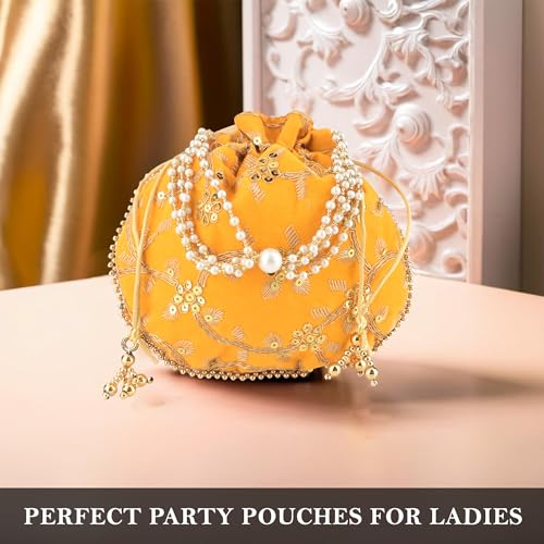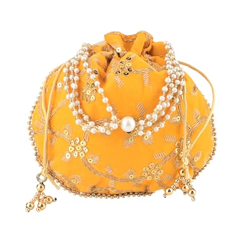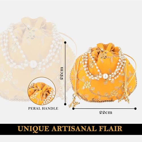 ✅Package Contain – 1 Piece Potli Bag | Yellow | Material : Polyester | Package Dimensions: 22 cm x 22 cm x 1 cm