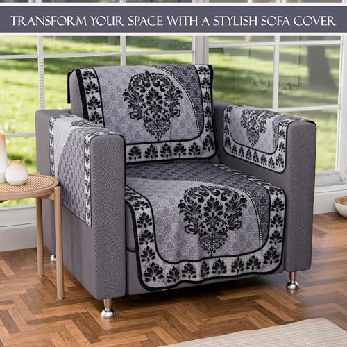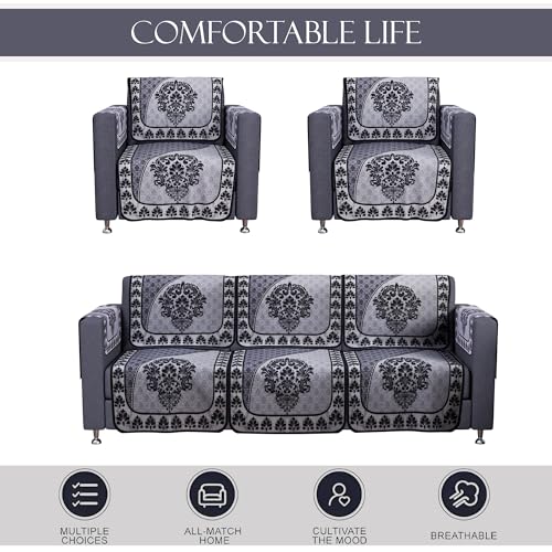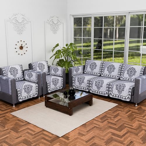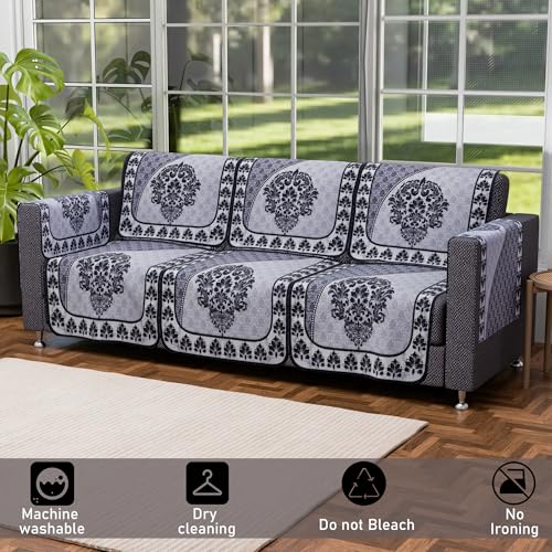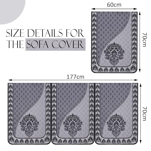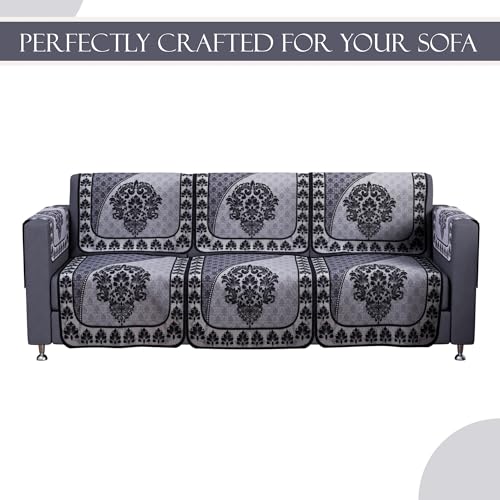 ✅ Package Contains – (16 Pcs) 5 Seater with Arms Sofa Cover | Color – Paradise 326 Number Digital Print – Black & Grey | Material – Cotton | Product Dimensions – 3 Seater : 177 cm x 70 cm x 1 cm | Single Seater : 70 cm x 60 cm x 1 cm