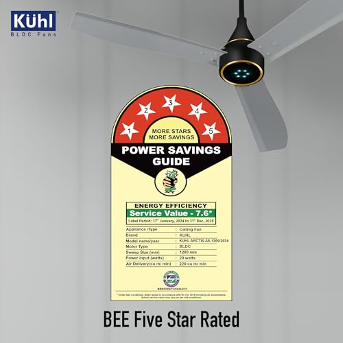 BEE 5 Star Rated and ISI Marked: All Kühl Stylish Arctis Fans are BEE 5 Star Rated and ISI marked that means it ensures bringing down the power consumption, thus, saving a lot of energy and money.