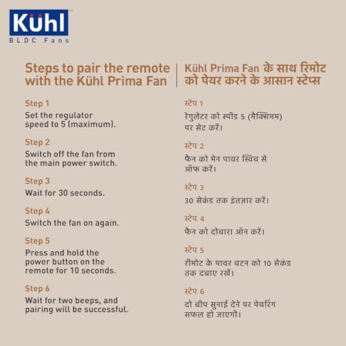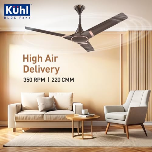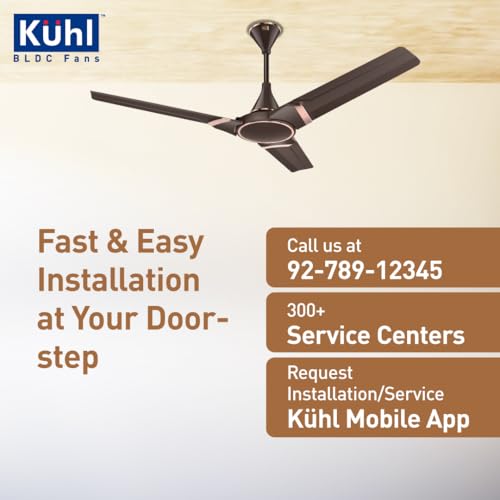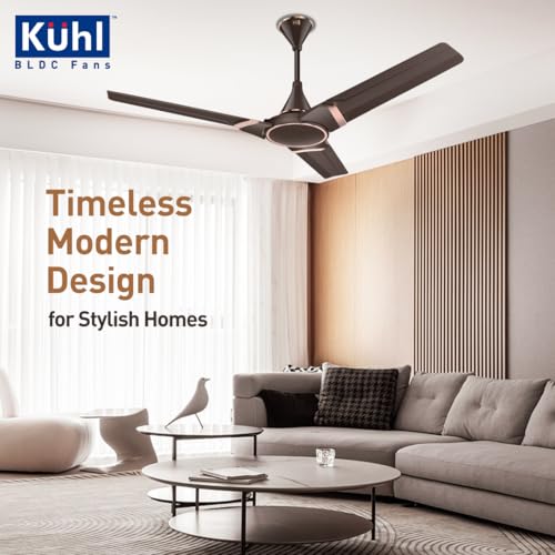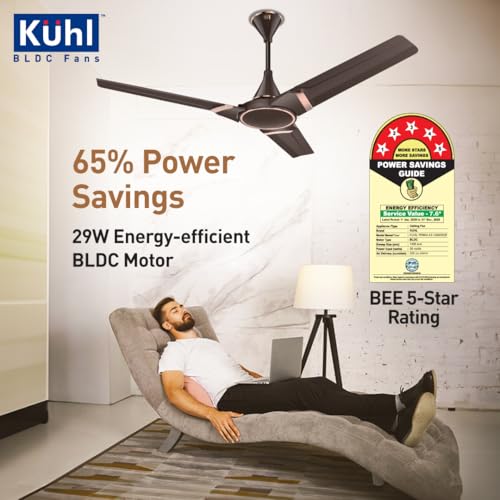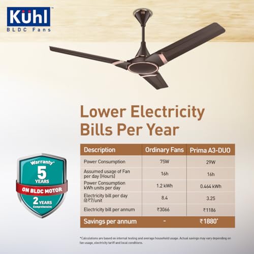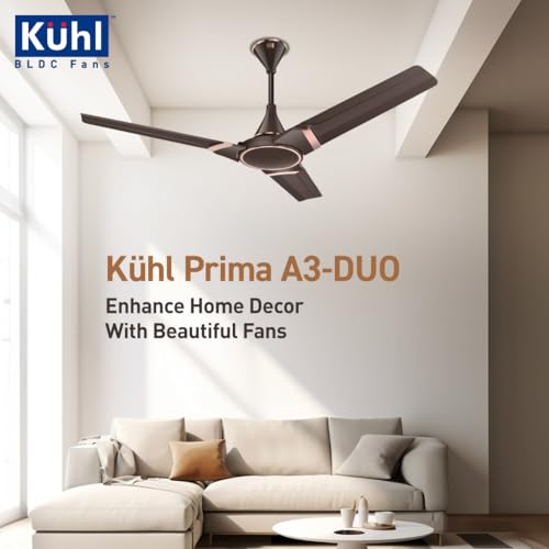 KUHL Prima A3 Duo 1200MM 65% Power Saving BLDC Ceiling Fan | BEE 5 Star Rated & ISI Marked | 29W | High Air Flow & Low Noise | Remote & Regulator Operated | 5 Year Warranty on Motor | Espresso