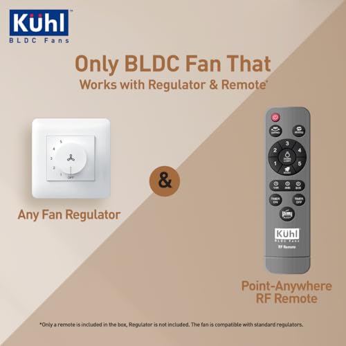 KUHL Prima A3 1200MM 65% Power Saving BLDC Ceiling Fan | BEE 5 Star Rated & ISI Marked | 29W | High Air Flow & Low Noise | Remote & Regulator Operated | 5 Year Warranty on Motor | Duo White