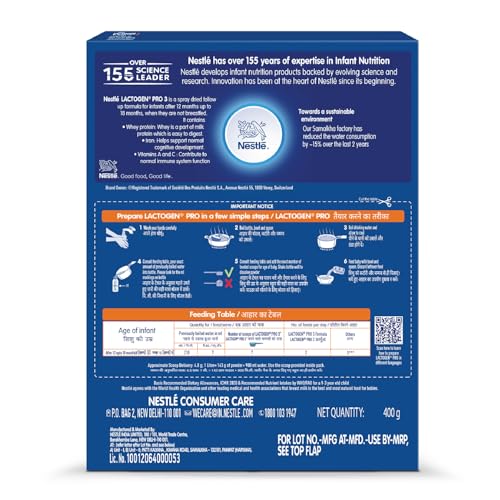 LACTOGEN PRO 3 Follow Up Formula with Whey Protein, Iron, Vitamin A, C & D After 12 Months Upto 18 Months