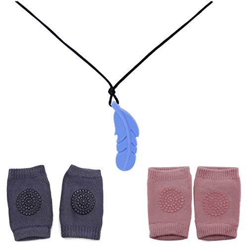 ❤ The Package consists of – 2 pairs of Baby Knee pads / Socks (Colours : Dark Grey & Pink). 1 Pc Teether – Colour: Blue.