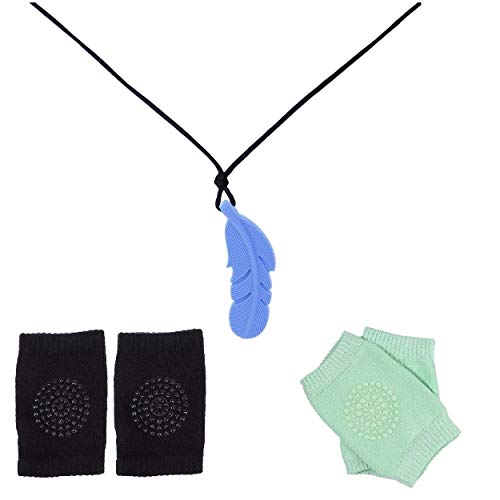 ❤ The Package consists of – 2 pairs of Baby Knee pads / Socks (Colours : Black & Light Green). 1 Pc Teether – Colour: Blue.