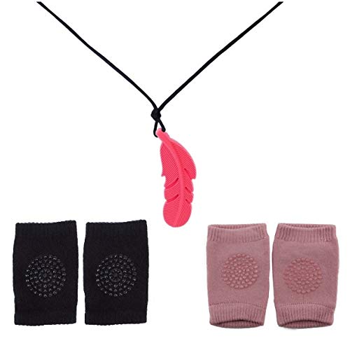 ❤ The Package consists of – 2 pairs of Baby Knee pads / Socks (Colours : Black & Pink). 1 Pc Teether – Colour: Fluorescent Orange.