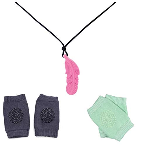 ❤ The Package consists of – 2 pairs of Baby Knee pads / Socks (Colours : Dark Grey & Light Green). 1 Pc Teether – Colour: Pink.