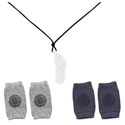 ❤ The Package consists of – 2 pairs of Baby Knee pads / Socks (Colours : Light Grey & Dark Grey). 1 Pc Teether – Colour: White.