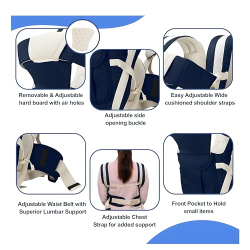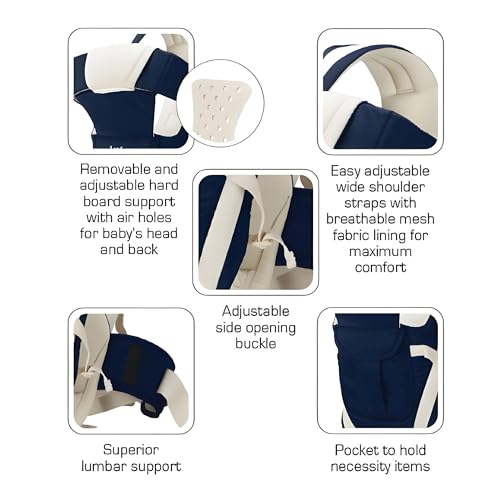 belts – Adjustable wide padded shoulder straps with chest strap provide optimal neck & shoulder comfort and a padded waist belt for superior lumbar support Comfortable inner cushioned seat area with detachable infant insert cushioned seat for babies below 6 months
