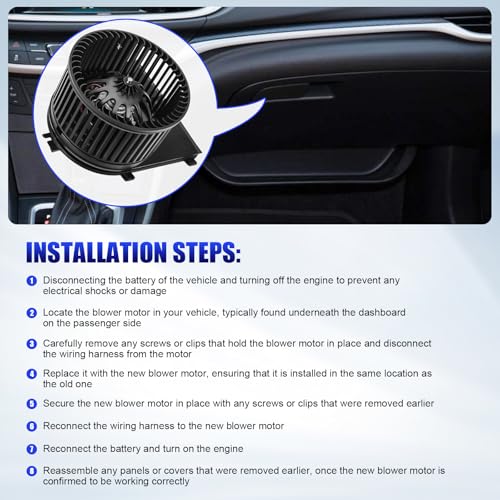 Enhanced Blower Motor: If your automotive ac blower motor fan are experiencing problems as weak airflow from vents/unusual noises/vibrations, please replace your ac heater blower motor for strong air flow