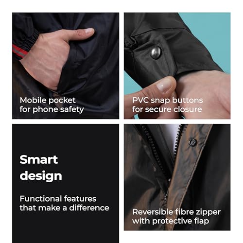 Smart Design – The reversible design adds extra convenience and style. It features a smooth fiber zipper, PVC snap buttons, and an inner mobile pocket to safely store your phone or essentials during rainy adventures.