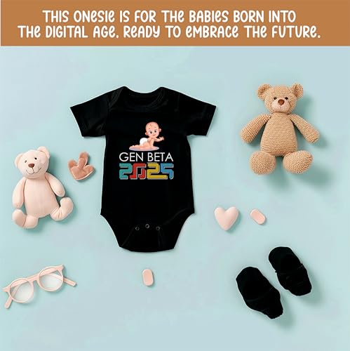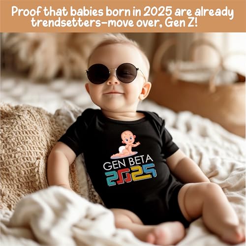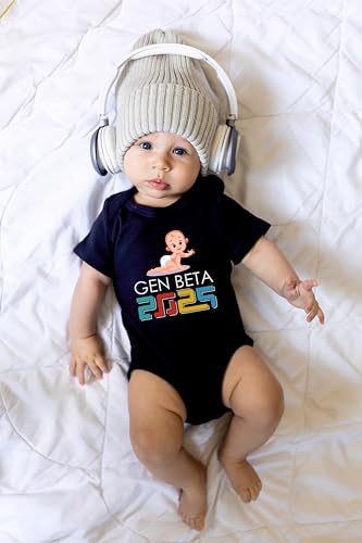 Introducing an adorable and trendsetting baby romper designed specifically for Generation Beta – the little ones arriving in 2025 ! This charming romper features a playful design with colourful retro-style typography and a cute baby icon, perfect for capturing those precious milestone moments and photo shoots. Available in classic black, navy blue, and crisp white colour, these baby clothes photoshoot items are crafted to keep your little one comfortable and stylish. The soft fabric ensures your baby stays cosy during photo sessions and everyday wear. With sizes ranging from 0-12 months, these rompers make delightful gifts for expecting parents and newborns alike. The snap closures make dressing and nappy changes hassle-free, while the stretchy neckline ensures easy over-the-head dressing. Perfect for professional photo shoots, casual wear, or creating memorable social media moments with your little trendsetter.
