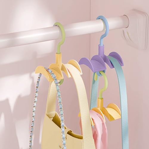 PACKAGE INCLUDES: The set contains 4 rotating handbag holders, ideal for organizing and storing handbags efficiently. These versatile hooks rotate for easy access and are a smart addition to your closet or entryway