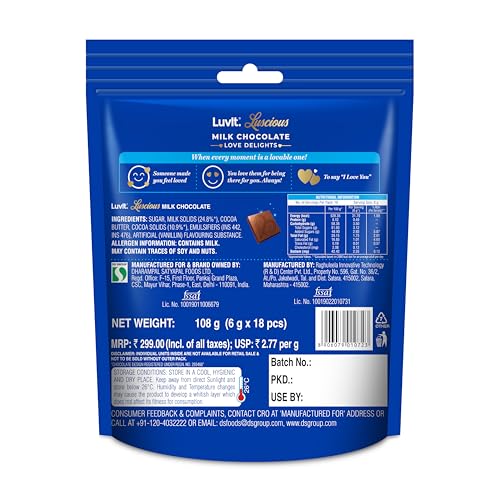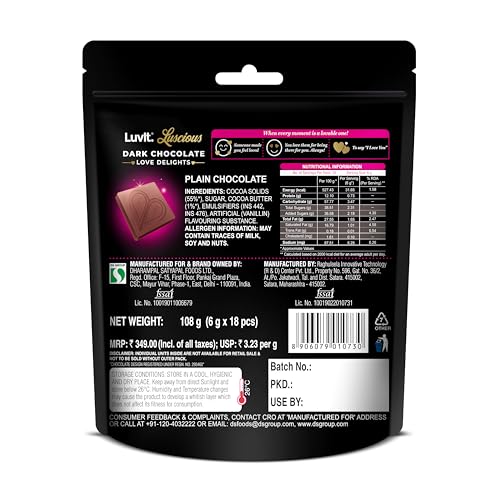 The irresistible pack contains 20 pieces of the delicious LuvIt. Luscious Dark Delights and 18 pieces of LuvIt. Luscious Love Delights – Milk