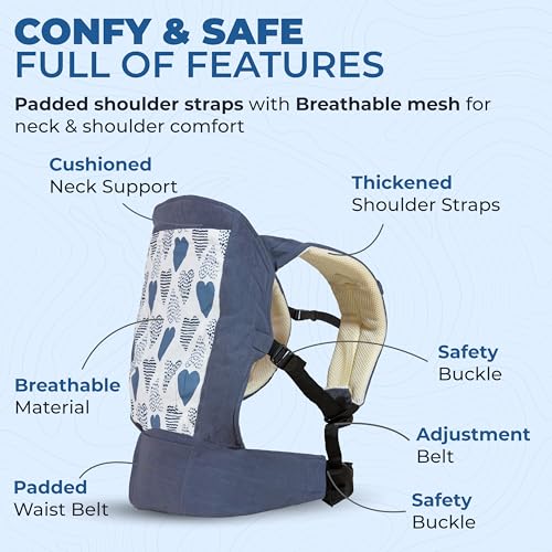 2 carrying positions – Front carry and Back carry options to provide a natural, ergonomic position best for long term, comfortable carrying