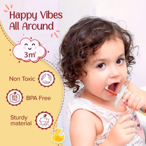 Introducing the LuvLap Silicone Training Toothbrush, designed to make oral hygiene fun and comfortable for your little one. With its silicone heads and fine soft bristles, this manual brush is perfect for introducing your child to the importance of dental care from an early age. The silicone heads and soft bristles of the LuvLap Silicone Training Toothbrush ensure gentle cleaning, making it ideal for delicate gums and emerging teeth. Say goodbye to harsh bristles and hello to a comfortable brushing experience for your child. Safety is paramount, which is why this toothbrush is equipped with an anti-choking shield. This feature provides added protection and peace of mind, ensuring your child can brush their teeth safely and independently. Designed with little hands in mind, the LuvLap Silicone Training Toothbrush features non-slip handles with a soft grip. This allows your child to hold the toothbrush securely and maneuver it with ease, fostering independence and confidence in their dental care routine. With the LuvLap Silicone Training Toothbrush, oral hygiene becomes an enjoyable activity for your child. The soft bristles and comfortable design make brushing fun and engaging, while the anti-choking shield and non-slip handles ensure safety and ease of use. Make dental care a positive experience for your child with the LuvLap Silicone Training Toothbrush. With its gentle cleaning action, safety features, and ergonomic design, it’s the perfect choice for parents who want to instill healthy oral hygiene habits in their little ones from the very beginning.