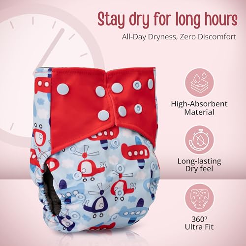 Easy to Clean: Simply toss them in the washing machine for hassle-free cleanup. These diapers are not only convenient but also cost-effective, in the long run.