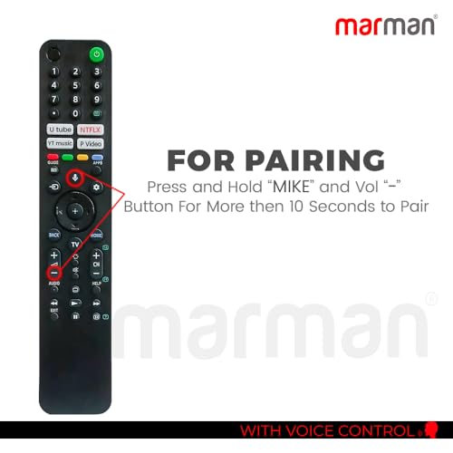 【 Pairing Method 】: To pair the remote, press and hold the Minus (-) and Mic keys simultaneously for 5-10 seconds. Ensure there is a distance of 30 cm between the remote and the Sony Bravia TV during the pairing process.