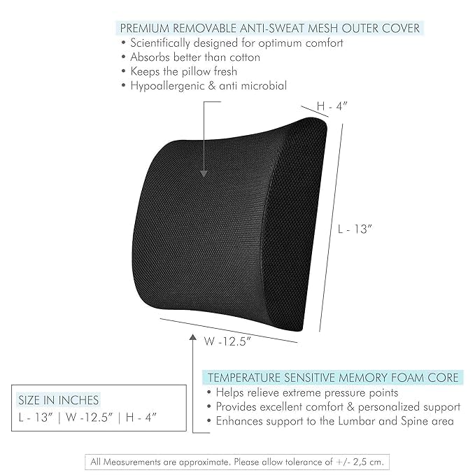 Relieve your back pain and improve posture with the Orthopedic Lumbar Support Pillow, expertly crafted for ultimate comfort and support during long sitting hours. Designed using high-density premium memory foam, it molds perfectly to your spine’s natural curve, providing continuous support to your lower back while reducing muscle tension and fatigue. The ergonomic contour design ensures proper spine alignment, maintaining a natural “S” posture whether you’re working, driving, or relaxing at home. Its breathable 3D mesh cover keeps air circulation optimal, preventing heat and sweat buildup even during extended sitting sessions. This pillow is ideal for office chairs, car seats, gaming chairs, recliners, and even wheelchairs — turning any seat into an orthopedic comfort zone. The anti-slip adjustable strap ensures the cushion stays securely in place. Durable, portable, and lightweight, it’s easy to carry between your home and workspace. Recommended by physiotherapists, this lumbar support cushion is your daily companion for a pain-free, posture-corrected, and comfortable sitting experience.