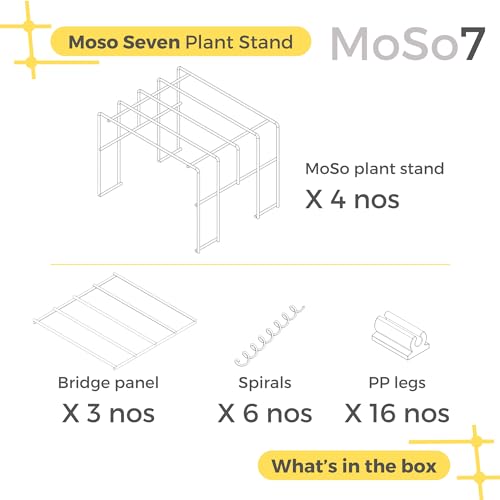 Sophisticated Design, Captivating Aesthetic: Moso’s innovative honeycomb pattern and high-quality metal mesh grid add a touch of sophistication to any space. It’s not just a plant stand; it’s a work of art that elevates your garden decor.Versatile Indoor-Outdoor Adaptability: Moso seamlessly transitions between indoor and outdoor settings. Whether you want to beautify your living room, balcony, garden, or any space in between, Moso effortlessly fits in, enhancing the ambiance.Space-Optimizing Modularity: The customizable design allows you to add multiple stands, creating striking arrangements to suit your style. Get creative and make your green oasis uniquely yours.High-Strength, Longevity: With an impressive weight-carrying capacity of 25 KG for the main stand and 15 KG for the bridge plate, Moso provides a sturdy foundation for your plants to flourish. Crafted with durable GI wire mesh and rust-proof powder coating, it stands the test of time, maintaining its impeccable appearance for years.Eco-Conscious Craftsmanship: Moso is made from 100% recyclable steel and features powder coating, making it a sustainable and environmentally responsible choice. By choosing Moso, you’re contributing to a greener world.