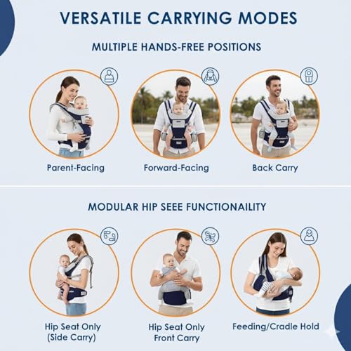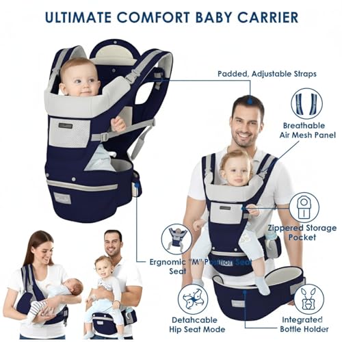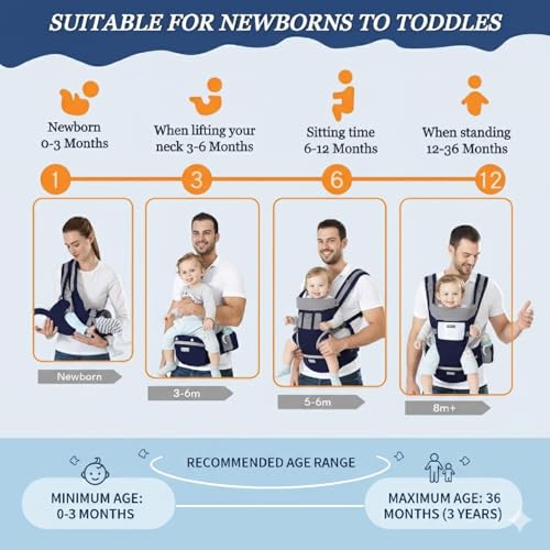 【Baby Carrier for 0 to 3 year Baby】- Convertible carrier for holding your baby in various positions, Back Carry, 2 Front Carry Facing In options for newborns and toddlers, Front Carry Facing Out for babies 4+ months, and Back Carry wide seat for toddlers. Adjustable to accommodate baby’s growth, for babies from 4 months to 3-year-old toddler, up to 15kg.