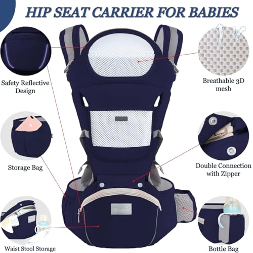 【Baby Carrier Bag】- Baby Carrier Color: Blue, Baby carrier is made of cotton fabric with breathable mesh, allowing for ultimate breathability and airflow! Easy to clean and machine washable!