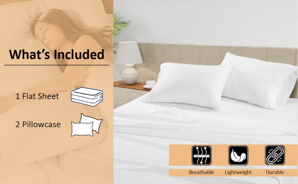 Complete Bedding Set – This set includes 1 flat bedsheet (90×100 inches) and 2 matching pillowcases (17×27 inches), giving your bed a stylish and coordinated look.