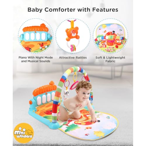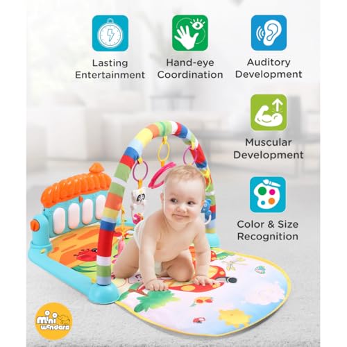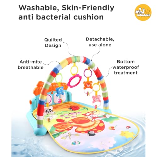 Baby gym with hanging toys for sensory and motor skill development. Includes rattles, mirror & soft mat. Made from baby-safe, non-toxic materials for worry-free daily use. Lightweight and portable design makes it ideal for travel and outings. Easy to clean and maintain, perfect for busy parents. Thoughtful gift choice for baby showers, birthdays, or new parents.