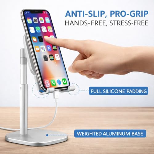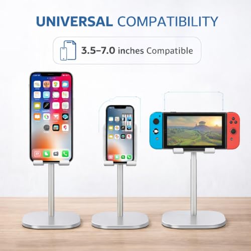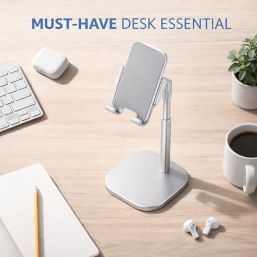Mizi Cell Phone Stand – Adjustable Angle & Height Desk Phone Holder Dock Compatible with iPhone 17/16/15 Pro Max, Samsung Galaxy, iPad, Switch & All Smartphones (3.5–10 Inch) – White