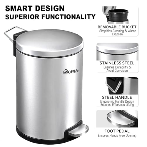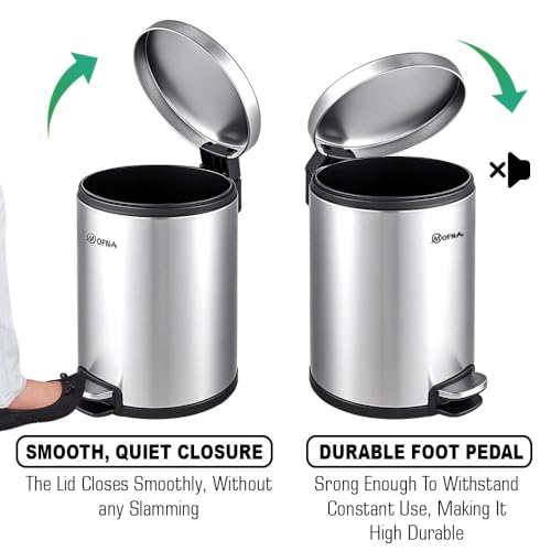STRONG AND DURABLE: Durable steel pedal makes it easy to lift the lid without using your hands, it helps to resist the spread of germs on your hands. The trash can will keep your home or office almost odor-free to prevent the spread of bacteria when the hinged lid is closed.
