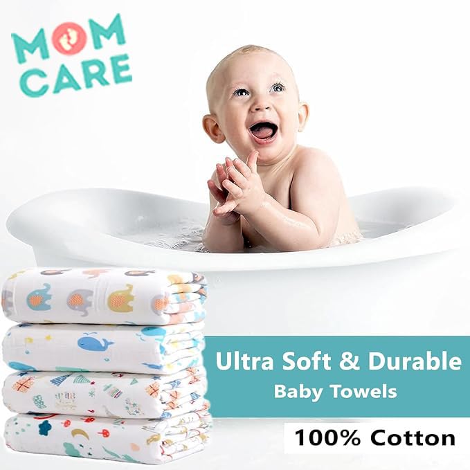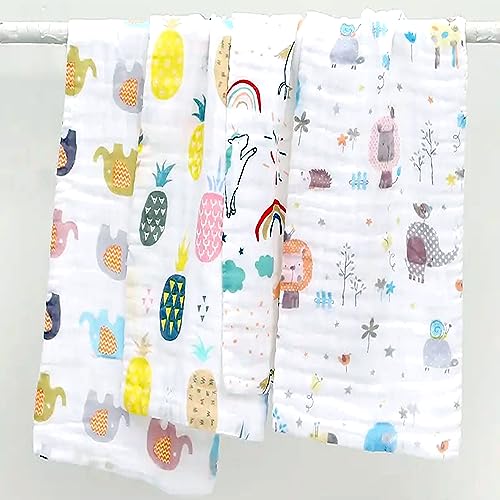Package includes : 1 pcs Soft Muslin Cotton Whie Towels with cute attractive prints