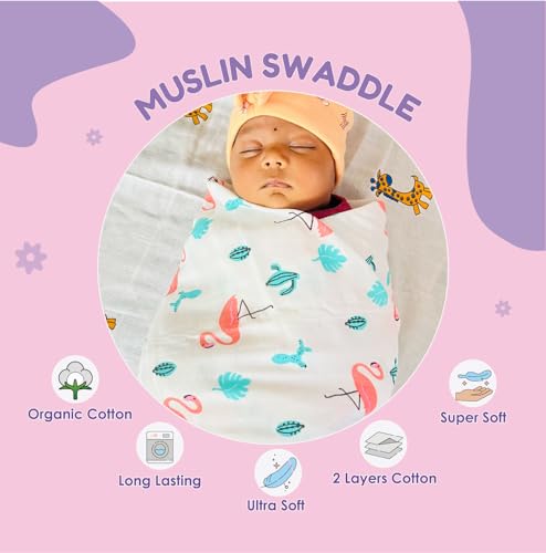 Premium Organic Cotton Muslin Swaddle Set: Crafted from premium organic cotton muslin, these swaddles are ultra-soft, breathable, and gentle on your baby’s delicate skin. With dimensions of 100×100 cm, these large-sized swaddles offer ample coverage for your baby’s snug comfort.
