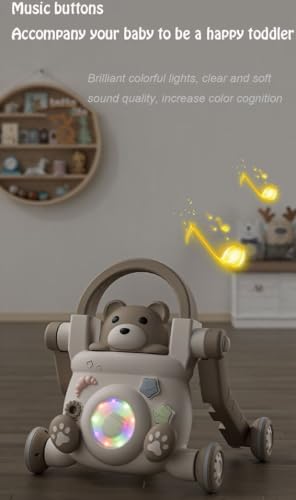 Function: Walker/Balance Car/Scooter/Trolley ○ The baby walker helps children learn to walk with a scientific posture and prevents them from developing “O”-shaped legs. ○ The balance bike trains children’s leg strength. ○ The scooter develops children’s coordination and balance. ○ The stroller promotes the relationship between children and parents and allows parents to better care for their babies. The pulley has deceleration, quietness, shock absorption, and wear resistance functions to better protect children’s safety. Two-level height adjustment is suitable for babies of different heights. It has lighting and music functions, but requires batteries to operate. Batteries are not included.