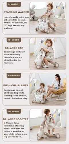 [Multifunctional] It can be switched between four modes: walker/balance car/scooter/cart, and has two height adjustment levels, making it suitable for babies of different heights and accompany children from learning to walk to riding a bike.