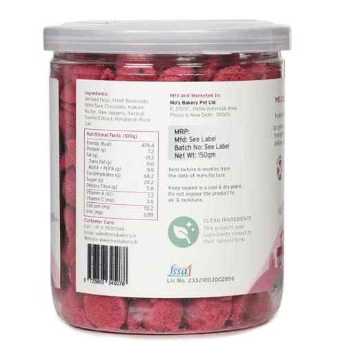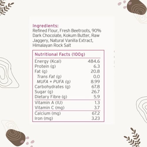 HEALTHY SNACK: A healthy take on the classic cookies, loaded with the star of vegetables Beetroot, our beetroot & dark chocolate cookies have blood cleansing and anti-oxidant properties. Beetroot and dark chocolate both have natural sugars, they also come with a lot of benefits if eaten in moderation regularly. Shelf Life: 6 Months