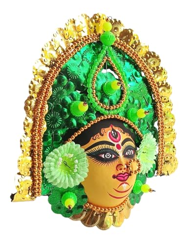 The Tribal Mask Associated With The Age-Old Dance Form Called As Chhau Of Purulia Region Of West Bengal Are Acclaimed For Their Craftsmanship. The Performers Wear The Masks Of Various Mythological Characters And Animals Incorporating Elements Of Martial Arts Into Their Movements Narrating Mythological Stories. The tradition of making Chhau masks started during the rule of king Madan Mohan Singh Deo of Baghmundi. It is traditionally associated with the age-old dance forms in Purulia, West Bengal. The Chhau Mask has ferocious facial expressions, bloodshot eyes, wide dilated nostrils, wrinkled skin, and open mouth from which fangs come out. The masks are made up of paper pulp, mud, and clay subsequently dried in the sun to make it hard. The masks are then colorfully painted. The eye and nose areas have holes to enable vision and breathing. Finally, the masks are decorated with zari and other adornments. The masks have feathers and other ornaments that surround the face part of the mask.