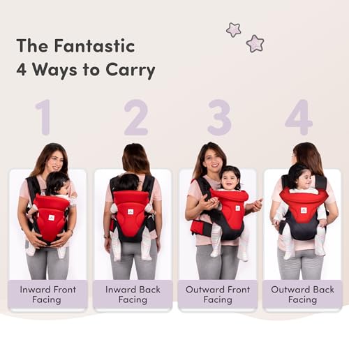 4 CARRYING POSITIONS: Our baby carrier bag offer 4 different carrying positions- inward front facing, inward back facing, outward front facing & outward back facing positions, for the baby’s comfort.