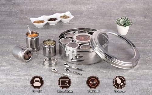 100% Food Safe, Durable Stainless Steel body of the masala box for kitchen