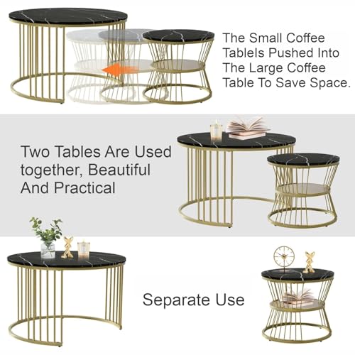 Simple & Elegance – This nesting tables is made up of trisamine board top with marble grain and gold metal legs,showing the natural beauty of the coffee table with a modern design and simple structure,can be paired with any style of room
