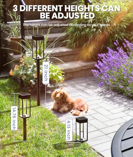 [Effortless Installation& 3 Height Adjustable]Our Solar Outdoor Light offers a hassle-free setup without the need for hardwiring or tools. Its sleek design allows it to seamlessly fit into a variety of outdoor spaces, including gardens, yards, walkways, and driveways. Elevate both the aesthetics and functionality of your outdoor area with the warm and inviting ambiance these solar lights create.