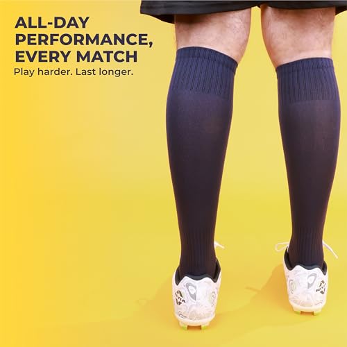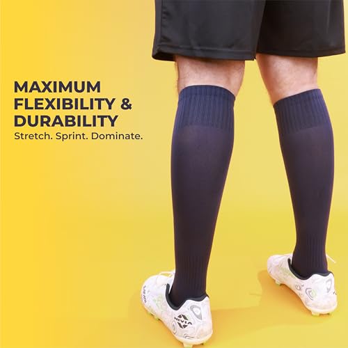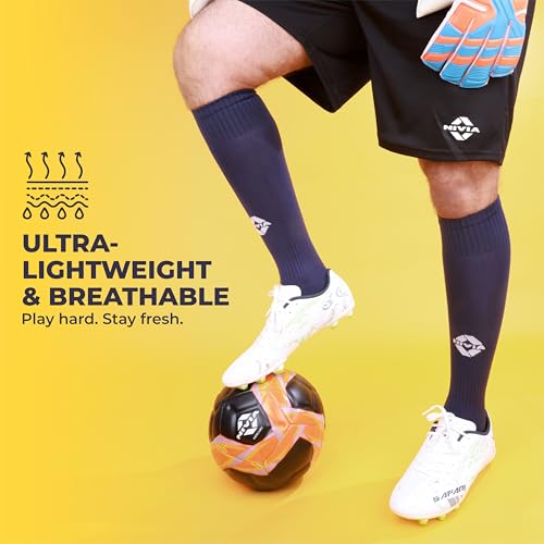 Nivia Plain Encounter Football Stockings, Micro Yarn Stocking, For Men & Women, Knee Length, Soccer Stockings (N. Blue/White) Size-L