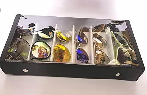 stylish watch box case for Six watch storage And SIX Sunglasses with excellent quality in wooden material and leather finishing. Designed To Keep Your Watches Safe And Dirt-Free, This Unique Leatherette Watch Case Is Both Good-Looking And Useful. With Compartment That Hold A Watch Using A Soft Cushion and sunglasses, This Box Is Ideal For Family Usage. Add This Case To Your Wardrobe Today And Store Your Watches Safely. This Watch Organiser Case Keeps Your Watches Collection Intact. This Case Will Fulfil The Need Of The Watch Collectors Who Want To Take Care Of The Watches Collected So Far For Their Long Life. Please Note, Watches In The Picture Are Only For The Purpose Of Displaying The Utility Of The Box And Not For Sale.