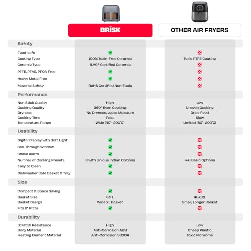 INDIA’S 1ST 100% TOXIN-FREE AIR FRYER | BRĪSK is built with ILAG CeramicTech— free from PTFE, PFAS, PFOA, lead, and cadmium. Cook without chemicals, fumes, or “forever” toxins for food that’s as clean as it tastes.
