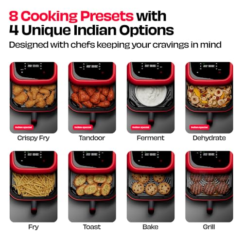 8 PRESETS WITH 4 UNIQUE INDIAN MODES | Choose from 8 one-touch presets designed for Indian kitchens: samosas, kebabs, fries, roti, tikkas and more.