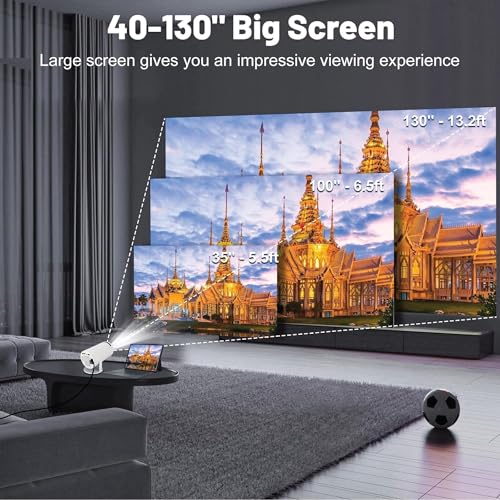 【HD Projection Screen】The movie projector offers a 40-130 inch projection screen with an optimal projection distance of 5.51 feet. Supports 4K 1080P, automatic horizontal keystone correction function provides you the best screen position.