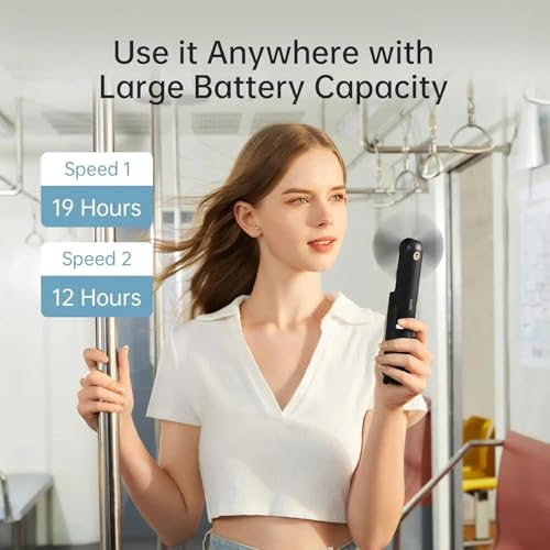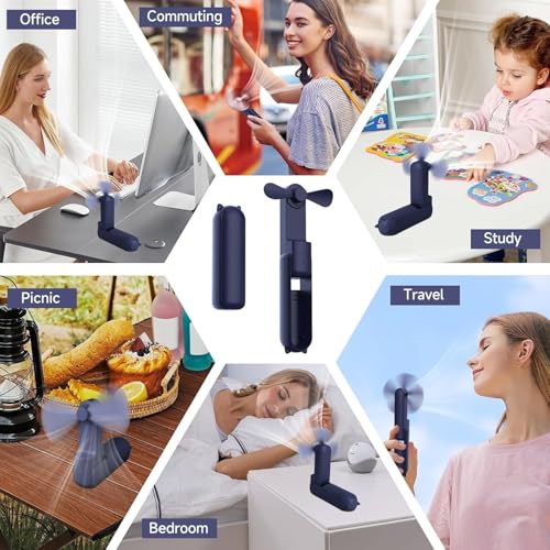 🛡️ Safety Handheld Fan, Designed with soft TPE blades that automatically stop when touched, ensuring safe use—especially for kids. The fan blades are foldable, making it easy to carry and store when not in use.