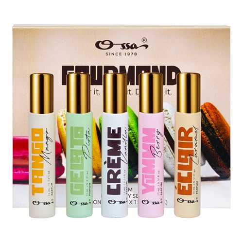 Gourmand Discovery Set – Ossa Gourmand Discovery Set Includes 5 unisex Perfumes, Tango Mango, Gelato Pista, Crème Vanilla, Yummm Berry & Eclair Caramel each inspired by indulgent desserts and crafted for long-lasting fragrance lovers.