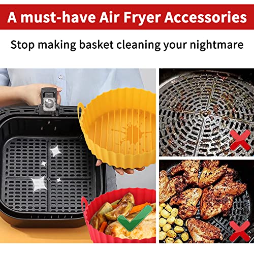 OUTXE 2-Pack Air Fryer Silicone Liners 8.5inch, Round, Reusable, Non-Stick, BPA-Free, Heat Resistant Up to 446°F (230°C), Red+Yellow
