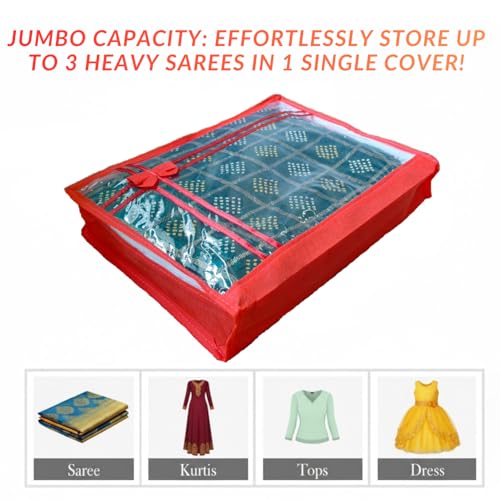 FRONT CLEAR WINDOW: No more mess! Easily spot your favorite saree through the large transparent window without opening the zip.