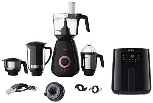 PHILIPS HL7707/00 750W Mixer Grinder with Jars & Digital Air Fryer HD9252/90 with Touch Panel, uses up to 90% less fat, 7 Pre-set Menu, 1400W, 4.1 Liter, with Rapid Air Technology (Black), Large