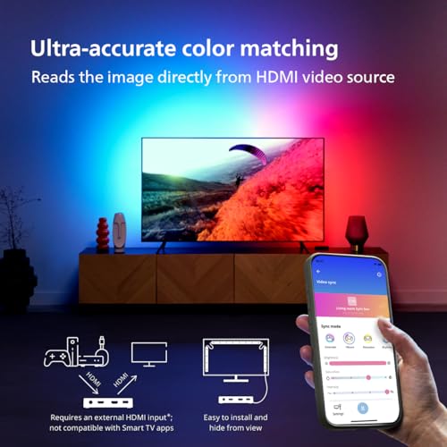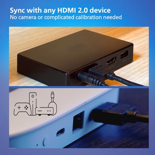 ACCURATE, REAL-TIME COLOR SYNCING: Sync Box reads signals directly from video source, for real-time color matching with your TV – Supports 4K at 60Hz, HDR10+ and Dolby Vision. Note: Requires an external HDMI input; not compatible with Smart TV apps